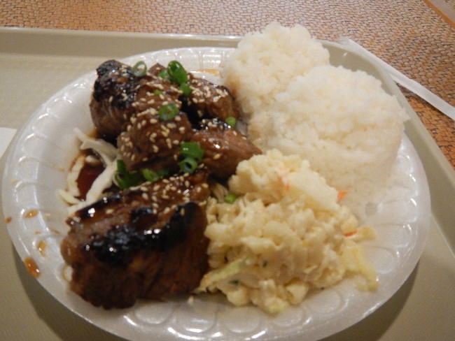 Und das hatte ich zum Znacht – Hawaiiann BBQ vom Fastfoodstand – super fein! Lustig, dass Hawaiianisch immer mit Reis und kalten Pasta kommt… dazu aber ein gutes altes Coke – aber Zero!