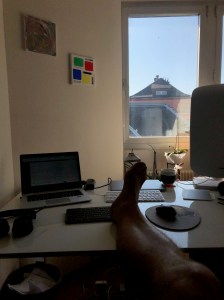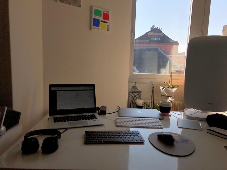 Ich habe mich ja schon vor langer Zeit darauf eingerichtet, einmal pro Woche oder auch mal etwas häufiger zuhause im Home-Office und nicht im Büro zu arbeiten. Zum Glück, denn ich fühle mich hier ganz wohl und bin wegen der Digitalisierung, die ja mein Job auch ist, gut eingerichtet. Neu ist halt, dass ich gar nicht mehr ins Büro gehe und das ich in einer Art Bürogemeinschaft mit meiner Frau hier bin.